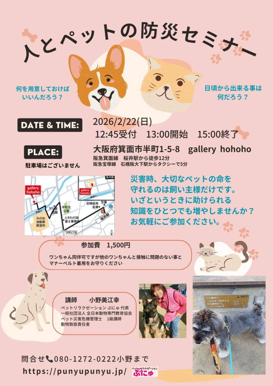 箕面市の素敵なギャラリーをお借りさせていただき【ペット防災セミナー】を開催いたします(*^^*)
